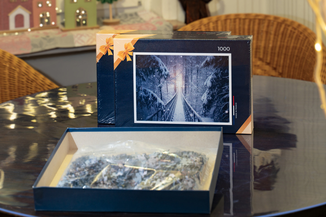 1000 teiliges Puzzle aus dem Sauerland "Seilbrücke im Winterwald"